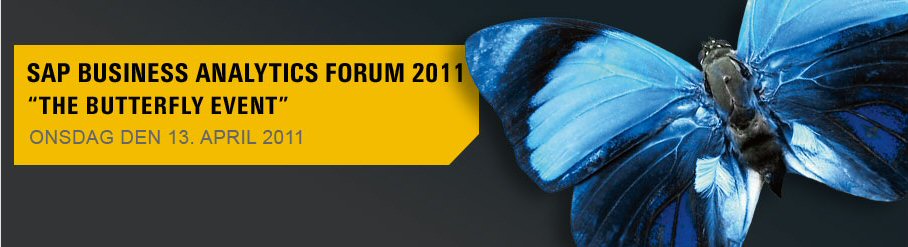 SAP Butterfly Event Apr 13, 2011 | Arrangementer Tilmelding til SAP BUSINESS ANALYTICS FORUM 2011 (The Butterfly Event) er åben..